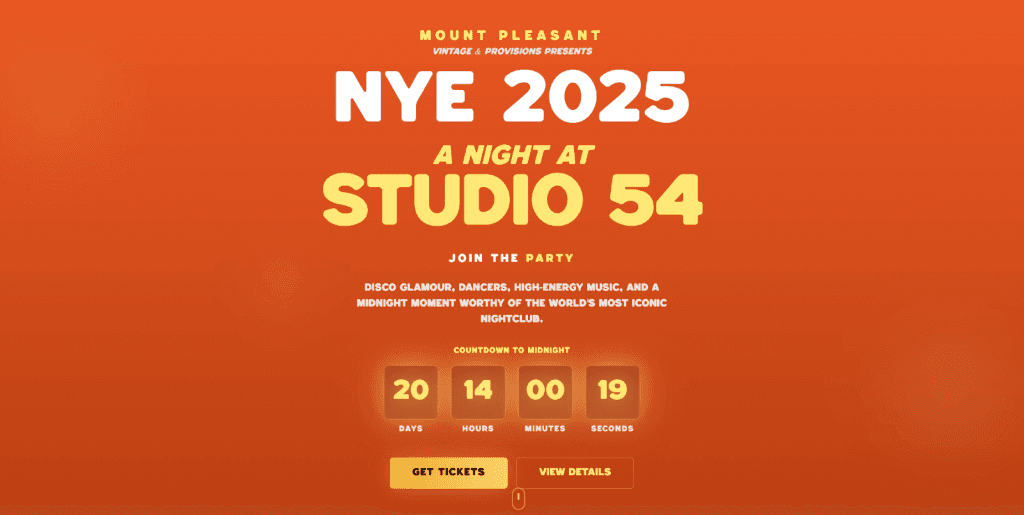 Landing page created for this specific NYE campaign to attract and leverage ticket sales.