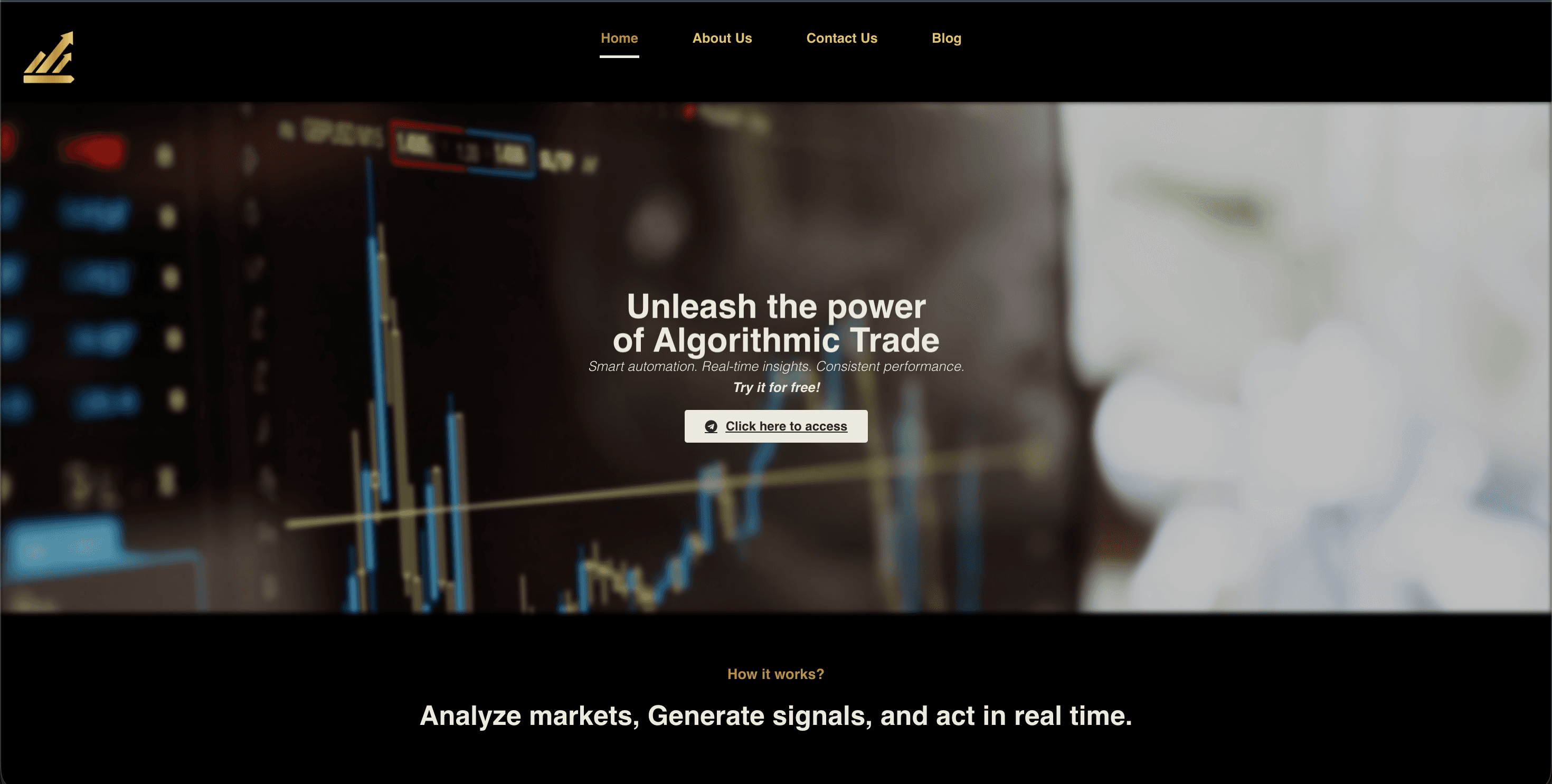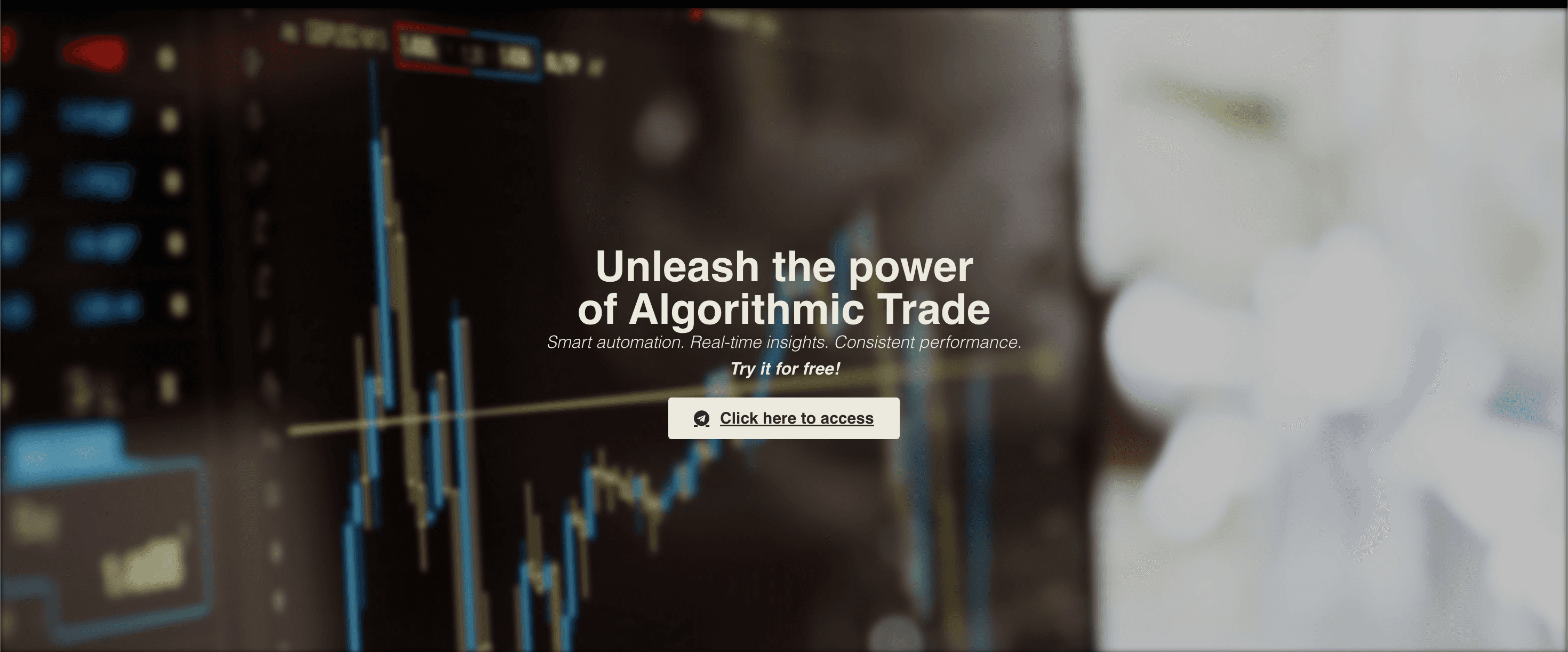 Website hero section, being straightforward to attract the customers to the telegram channel.